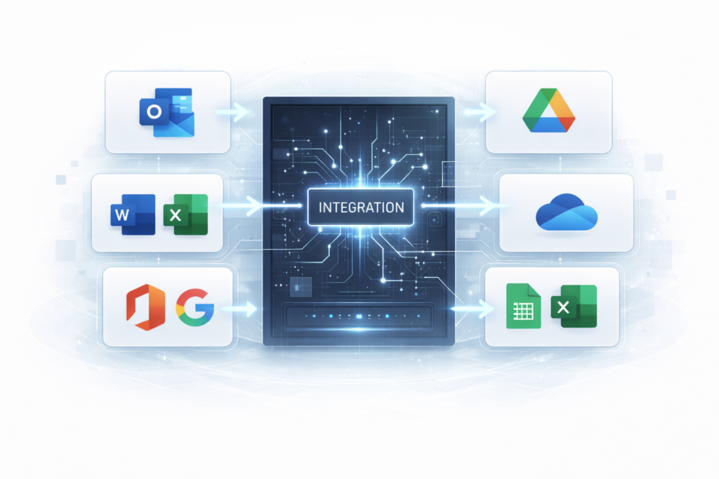 - Új és már használatban levő eszközök integrációs lépései adja a folyamat szerves részét. Kiemelt szerepet kap az Office 365, felhő alapú tárhelyek és egyéb dokumentum kezelő és kitöltő rendszerek melyek integrációja adja a stabil hátterét a rendszernek.